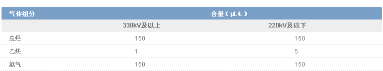 3.运行中变压器油中溶解气体含量注意值(GB/T 7252-2001)